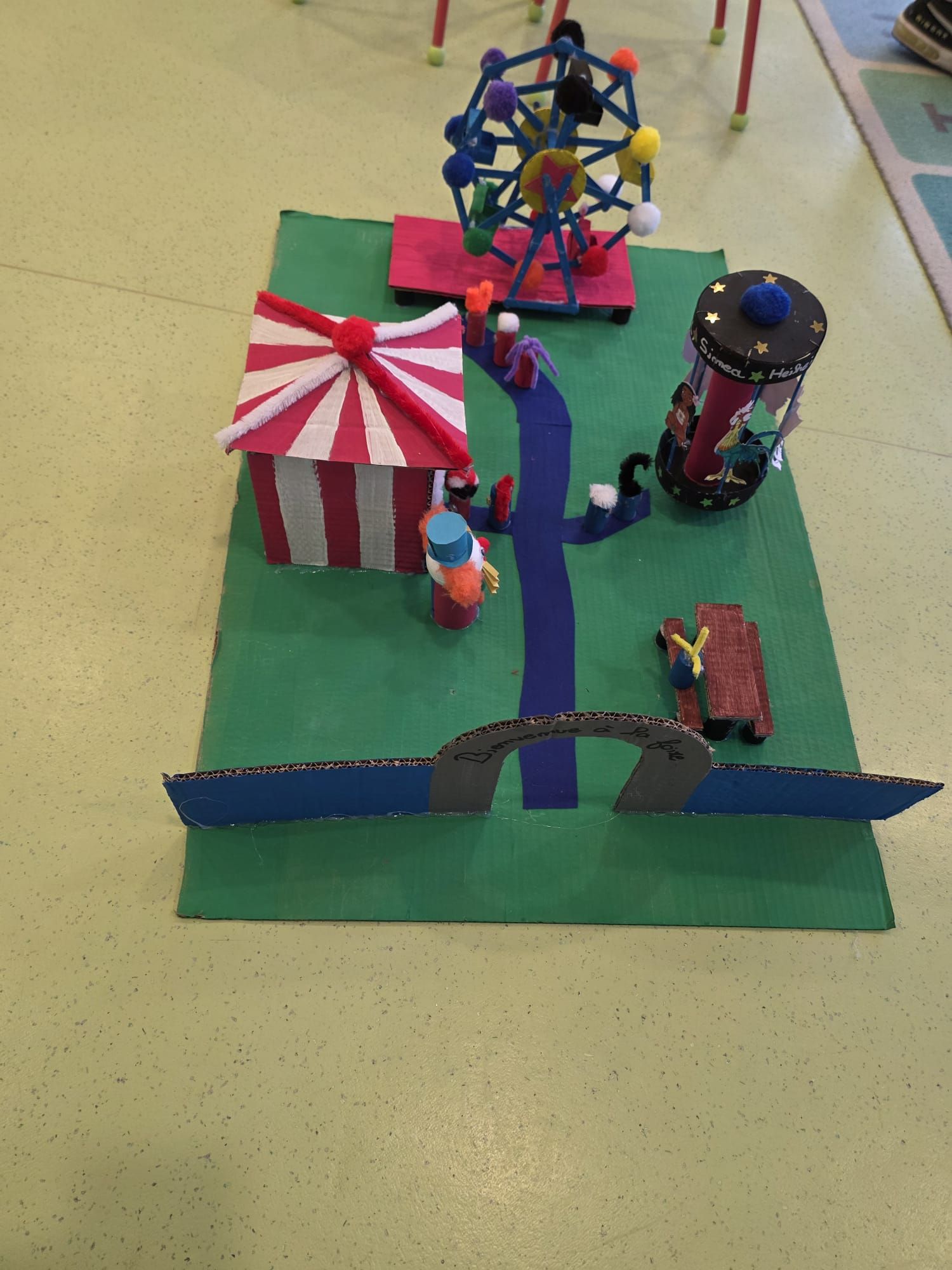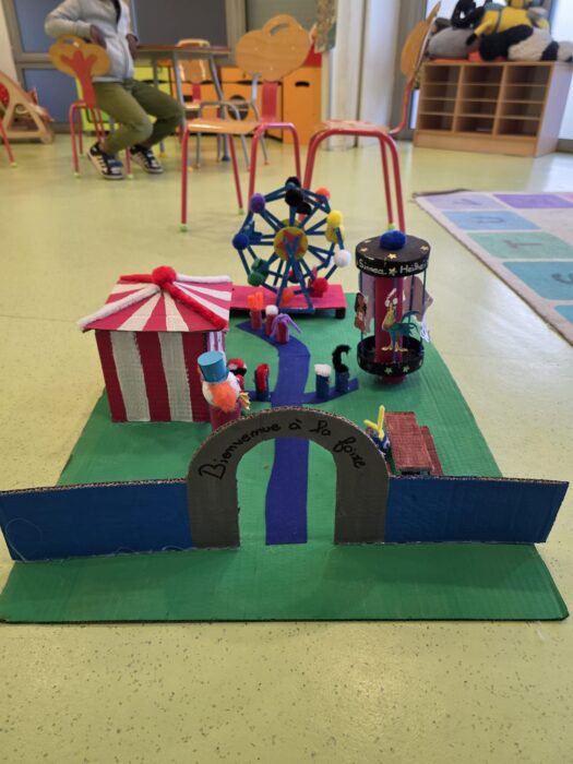 Un enfant rĂ©alise Ă©galement un projet personnel en 3D : la crĂ©ation d’un parc d’attraction et d’un cirque đŸŽȘ🎱. Un travail original qui mĂȘle imagination, construction et crĂ©ativitĂ© 🌟.